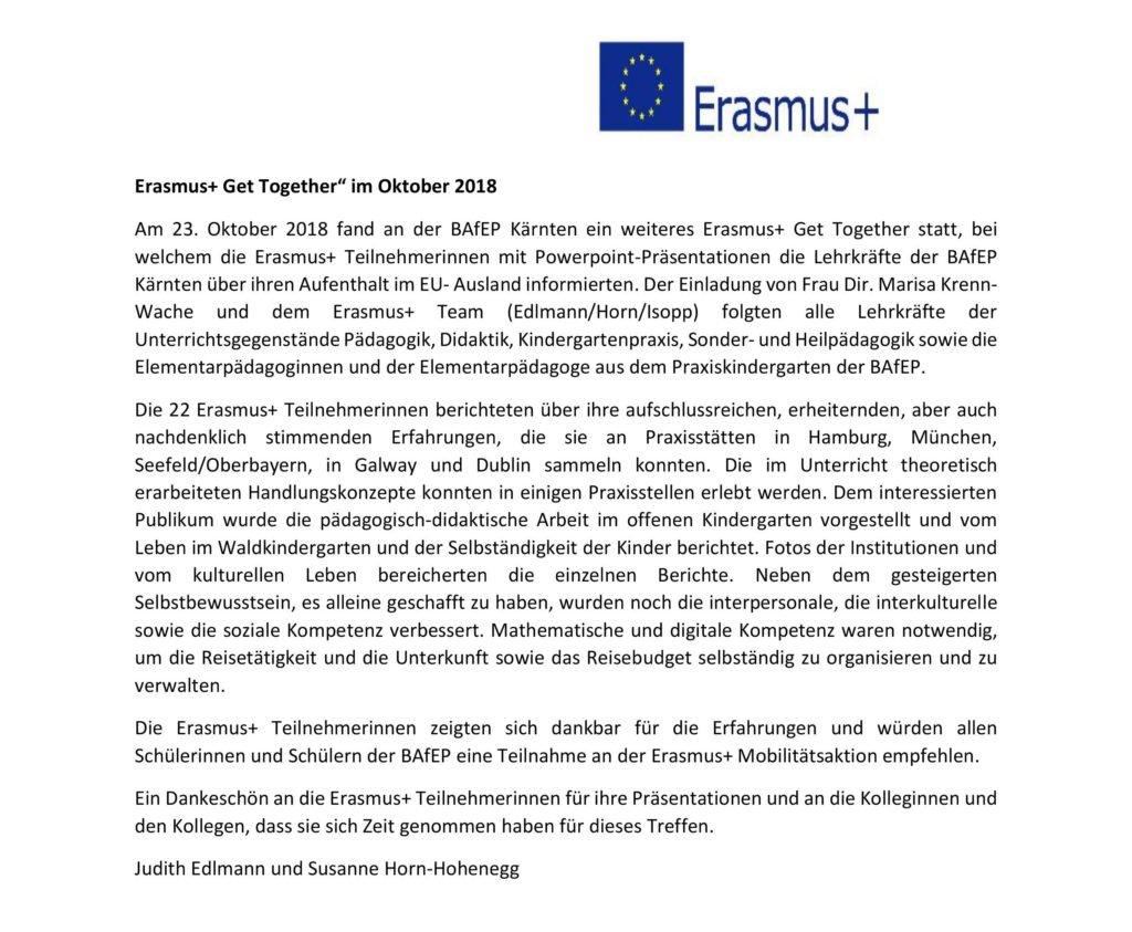 ERASMUS+ ist ein Förderprogramm der Europäischen union und umfasst alle Bildungsprogramme der EU für die allgemeine und berufliche Bildung. Dieses Programm unterstützt Schülerinnen und Schüler bei einem Auslandspraktikum/-aufenthalt, dessen Dauer zwei Wochen bis 12 Monate beträgt. Die Höhe der Förderung hängt von der Entfernung zum jeweiligen Gastland und von der Dauer des Praktikums ab.